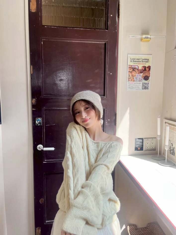 「白い天使降臨」岡崎紗絵 萌え袖ニット×肩出しコーデ披露!フェミニンな雰囲気あふれる姿に「透明感ある」「ニットのサイズ感が最高」