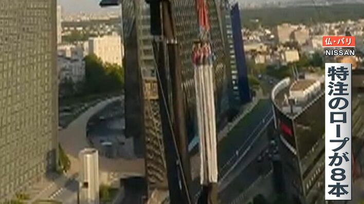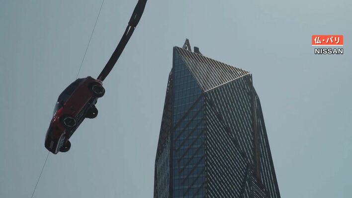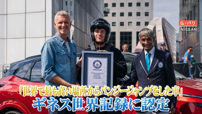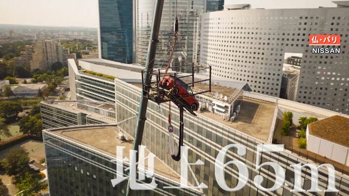 日産自動車がパリで地上65mから「車バンジージャンプ」でギネス世界記録に認定!車内には“運転手” も