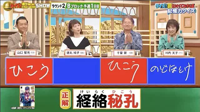 <『脳ベルSHOW』クイズ>「北斗の拳」に登場する“人間の急所”を何という?