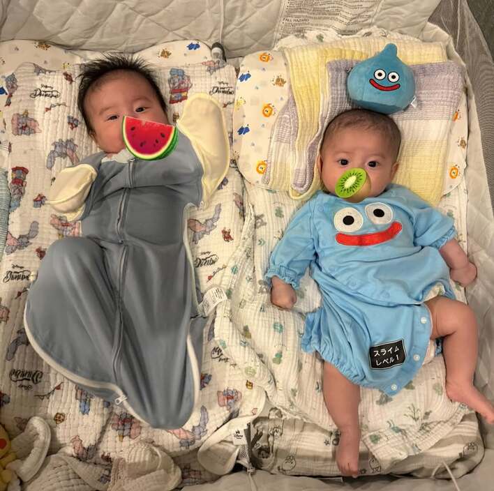 「頬がゆるむ」中川翔子 生後2ヵ月双子の可愛さ満点ショット公開!クリクリなおめめでカメラ目線決める弟に反響