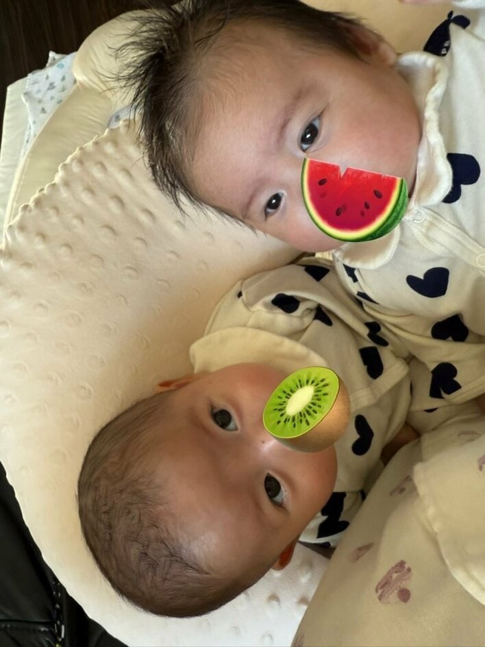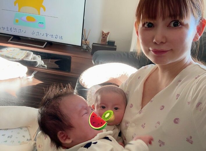 中川翔子 "毛量増”の生後2ヵ月双子「可愛すぎる」上目遣いショットを披露!目を細めて笑った愛くるしい表情の数々に「ぷにぷにしたい♡」「喜怒哀楽の目の表情が可愛いすぎ」