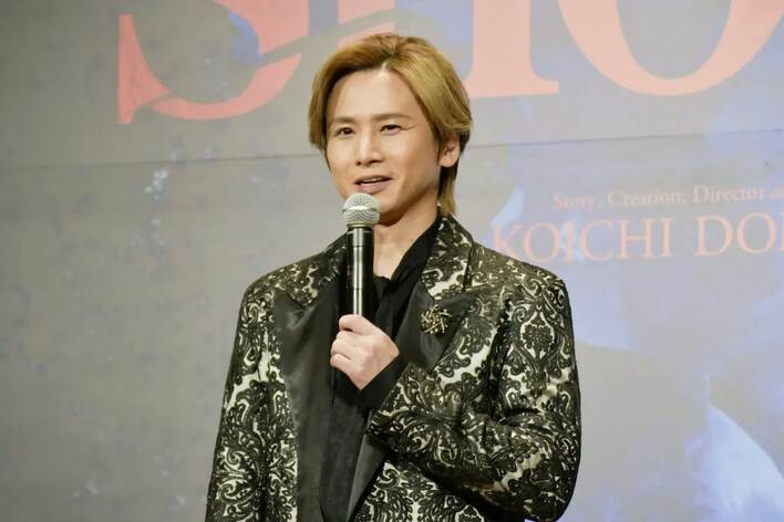 左から)中村麗乃、島田歌穂、佐藤勝利、上田竜也、堂本光一、中山優馬、前田美波里、綺咲愛里