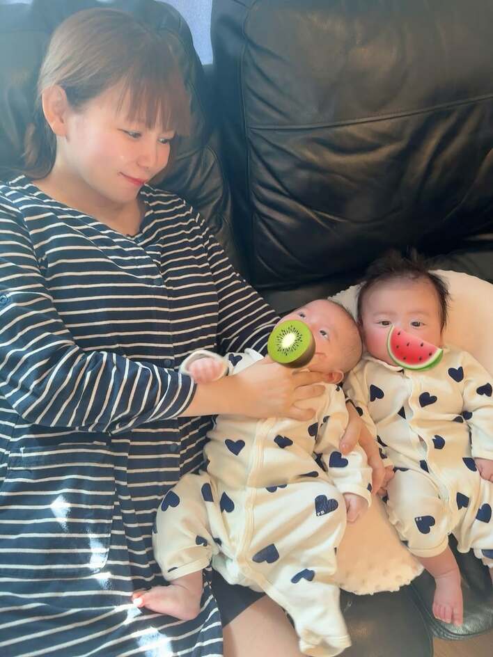 “お兄ちゃんムチムチ” 中川翔子 生後2ヵ月双子のキョトン顔&スヤスヤ寝顔公開!すくすく成長中の様子に「お顔が違う」「ぷくぷく」
