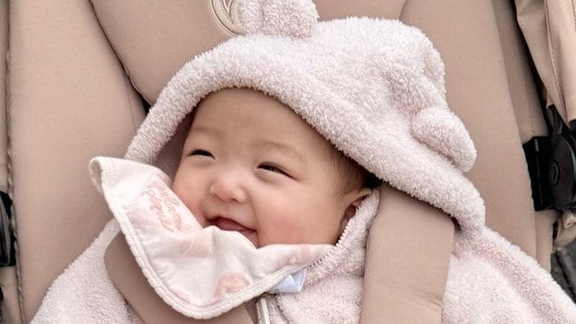 辻󠄀希美の夫・杉浦太陽 生後4ヵ月次女のニコニコ笑顔のお散歩ショット公開!笑い声が聞こえてきそうなご機嫌姿に思わず癒やされる