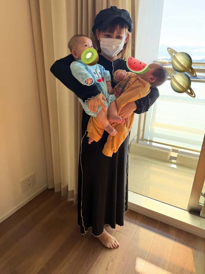 「成長はやぁ」中川翔子 生後2ヵ月双子のうるうる瞳どアップショット披露!「2人ともおめめパッチリでかわいい」兄が弟の顔を見つめる姿も公開