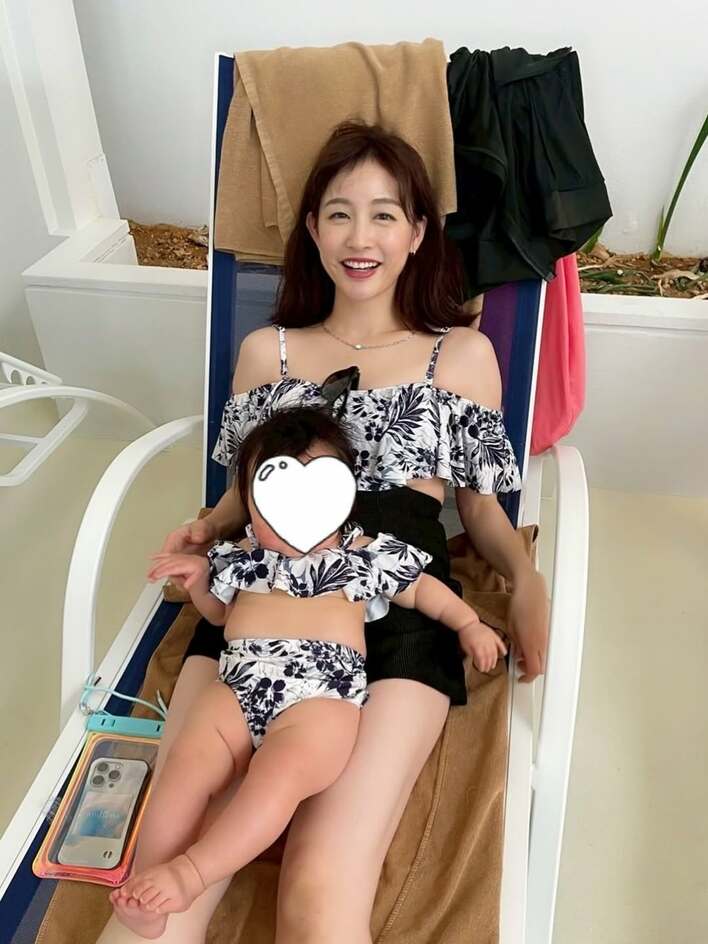 新井恵理那 産後約8ヶ月のビキニショット公開!沖縄プールでの0歳長女とのおそろい水着コーデに「ステキな親子」