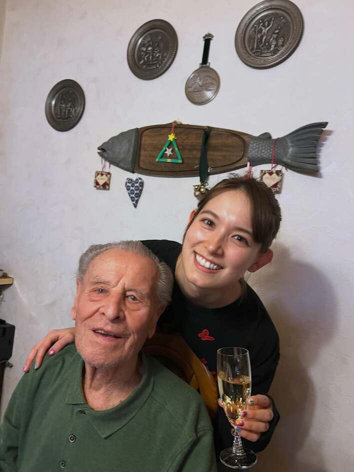 トラウデン直美 98歳ドイツの祖父と2ショット公開!家族と約10年ぶり冬のドイツに「ただいま〜って気持ち」