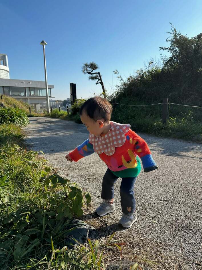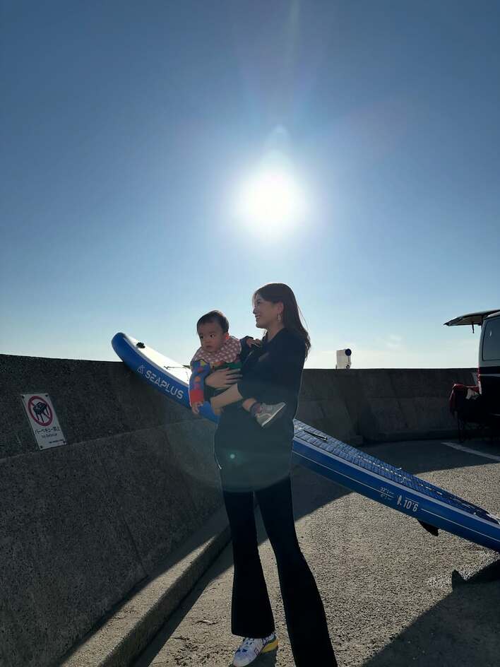 蜂谷晏海 長男“ベビバーグ”のかわいすぎるカラフルトップス×チェック柄コーデを披露!うるうるな瞳でカメラを見つめる姿にキュン♡