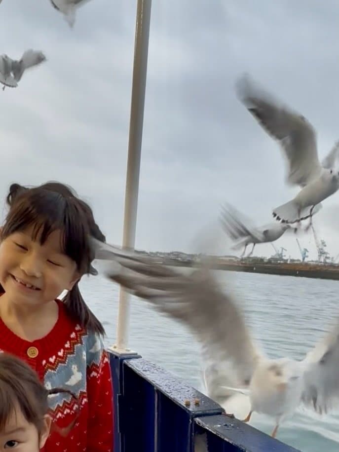 ののちゃん クルーズでのハプニングに動じぬ姿に「さすが」と反響!?妹とカモメ餌やり中の突然の出来事にも冷静な表情「面白い」「かわいすぎる」