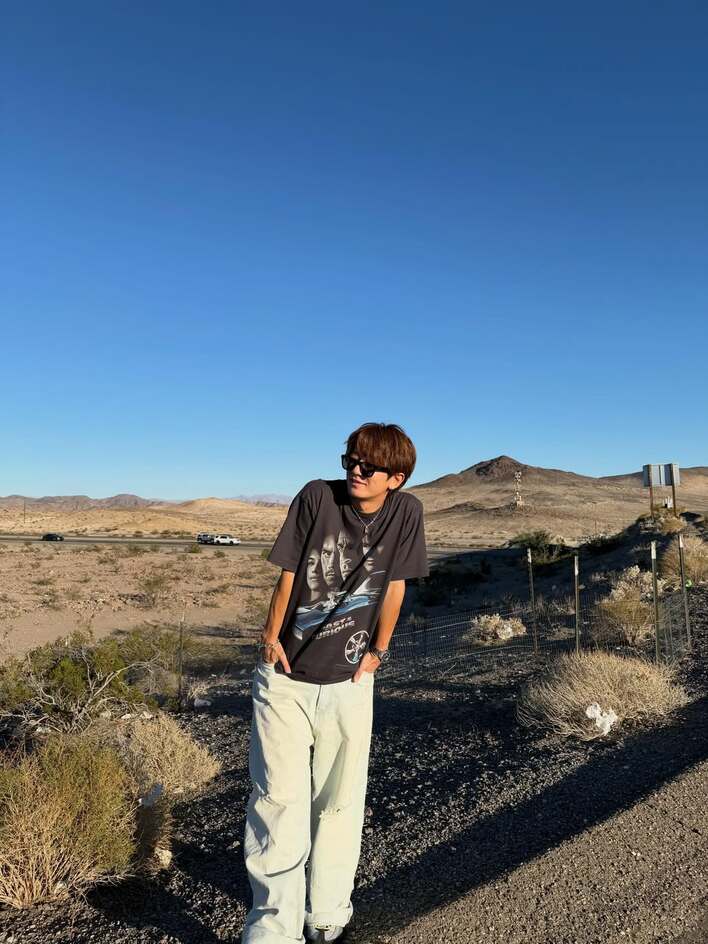 大倉士門 LAから“初ベガス”を走った高級車・マスタング披露!荒野広がるアメリカの絶景でクールなたたずまい「景色スゴいな···」「かっちょいいー」