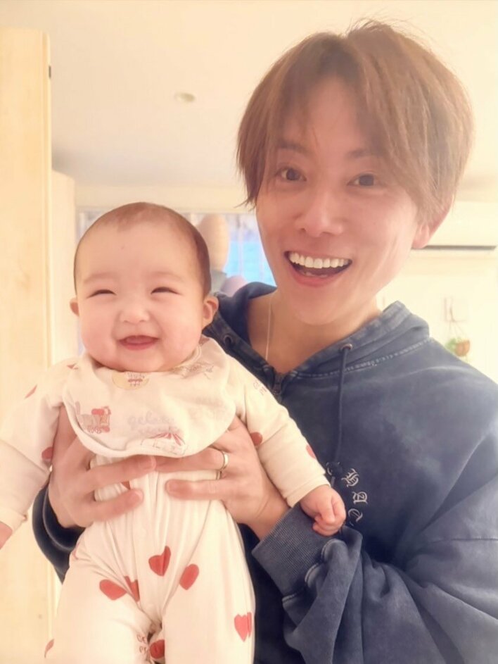 辻󠄀希美の夫・杉浦太陽 長女・希空撮影の生後5ヵ月次女とのニコニコ2ショット公開!“三日月目”の楽しそうな癒やし満点の表情にメロメロ