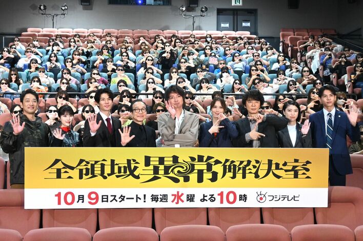 左から)迫田孝也、福本莉子、柿澤勇人、小日向文世、藤原竜也、広瀬アリス、ユースケ・サンタマリア、成海璃子、小宮璃央