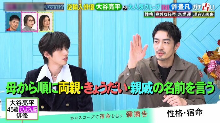 大谷亮平 揺れる結婚願望…相手に心を開かない一方「もう誰とでも」と思うことも!?INI・許豊凡は占いに喜び爆発「キター!」