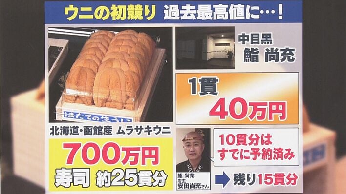 【初競り】一番マグロ 歴代2番目の2億700万円! ウニも過去最高値 衝撃の1貫40万円!?