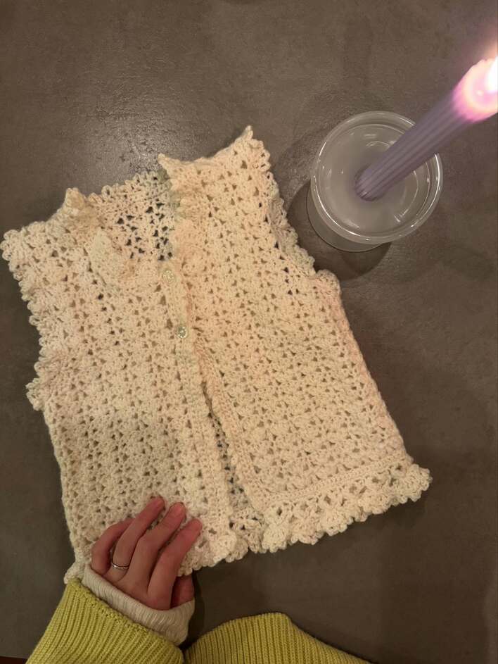 「素晴らしい仕上がり」新井恵理那 0歳長女への手編み作品を披露!コーヒーと共に編む様子や完成品を身につける長女の姿も「めちゃかわいい」