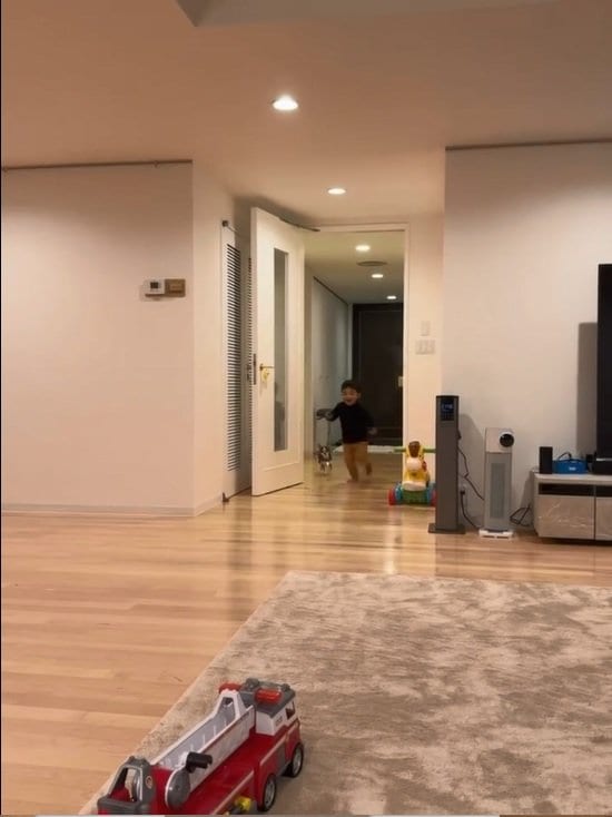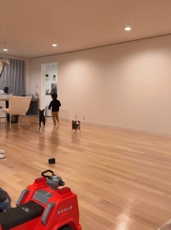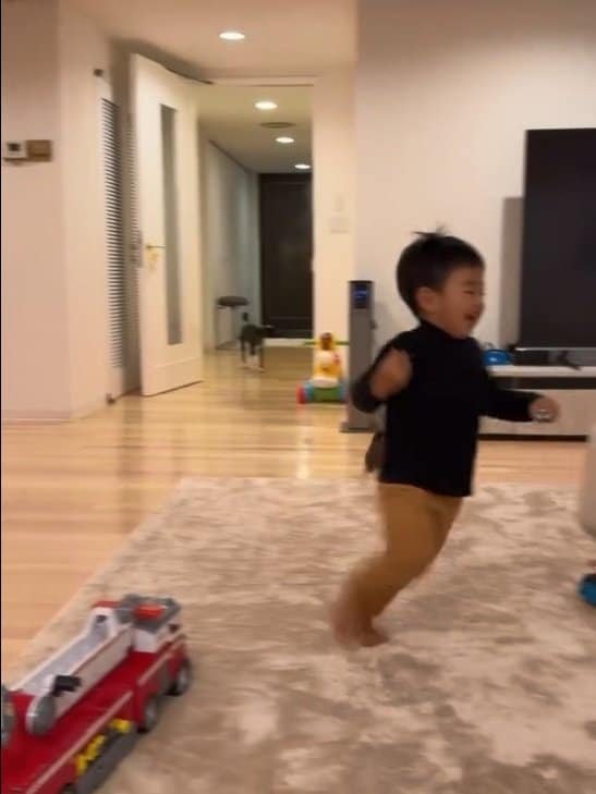 4児の父・ユージ 自宅の広々リビングで3歳息子が全力ダッシュする様子を公開!子ども用自転車&キックボード置かれたワクワク空間で元気いっぱい