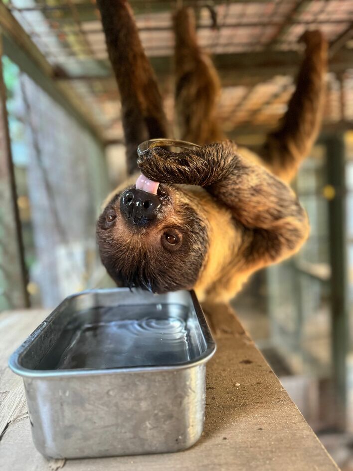 「そういうスタイルなんだね…」ナマケモノのなまけすぎな水分補給が“斬新!”と話題【激かわアニマル奇跡の瞬間】
