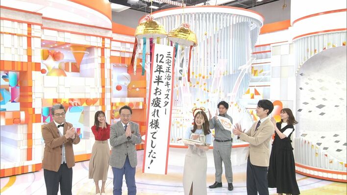 【特別写真】三宅正治アナ&軽部真一アナ堪えきれず感涙…めざましテレビ放送後に卒業セレモニー 井上清華アナ&生田竜聖アナも涙ながらに感謝伝える