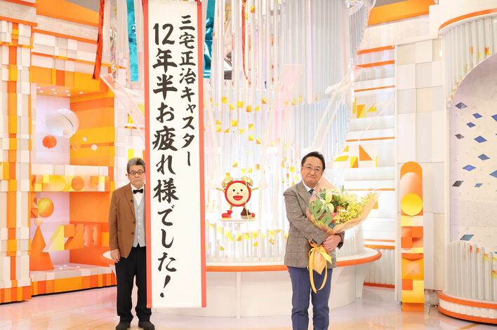 【特別写真】三宅正治アナ&軽部真一アナ堪えきれず感涙…めざましテレビ放送後に卒業セレモニー 井上清華アナ&生田竜聖アナも涙ながらに感謝伝える