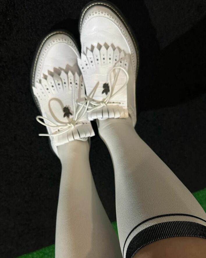 谷まりあ ミニスカートのゴルフウェア姿を公開!全身白コーデのポニテスタイル披露で「一緒にラウンドしたい!」