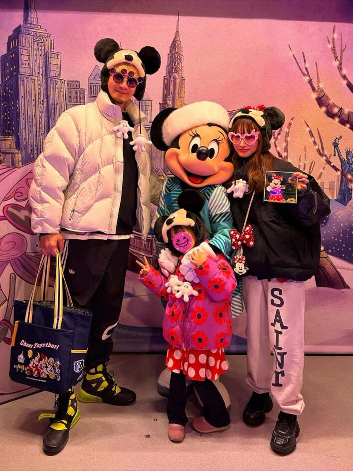 「幸せファミリーで素敵」mai 夫・JOYと5歳愛娘とディズニーを満喫!おそろコーデを楽しむ様子やミニーちゃんとのショットに「かわいすぎます」