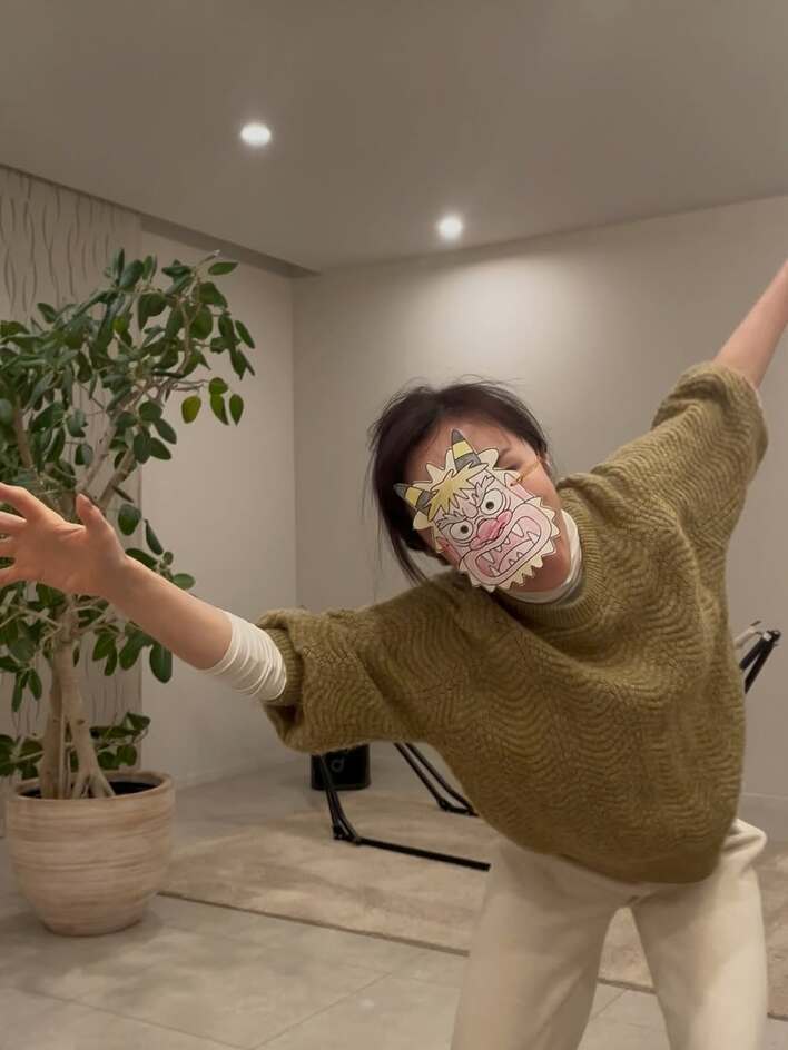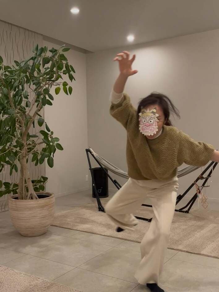 山口もえ 広々としたオシャレな部屋で節分を満喫!お面をつけて全力で演じた躍動感あふれる鬼姿に反響「かっこいいです!」