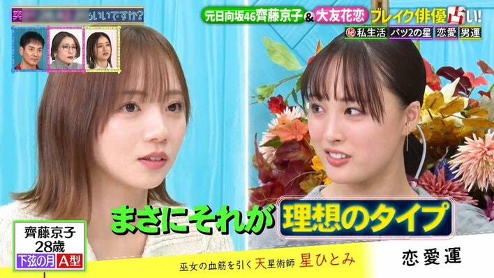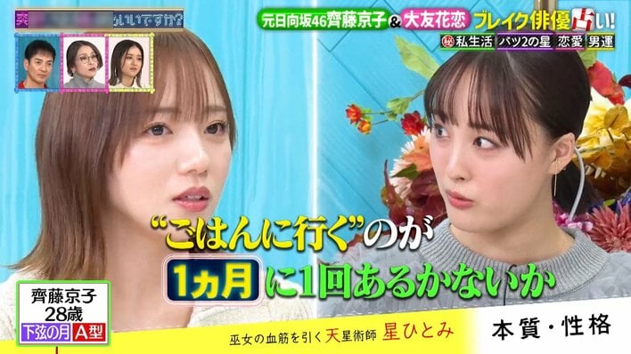 齊藤京子 アイドル時代は「すごく家の中で泣いた」“バツ2の星”鑑定も!?大友花恋「断りすぎかな?って揺れた」恋愛事情を告白
