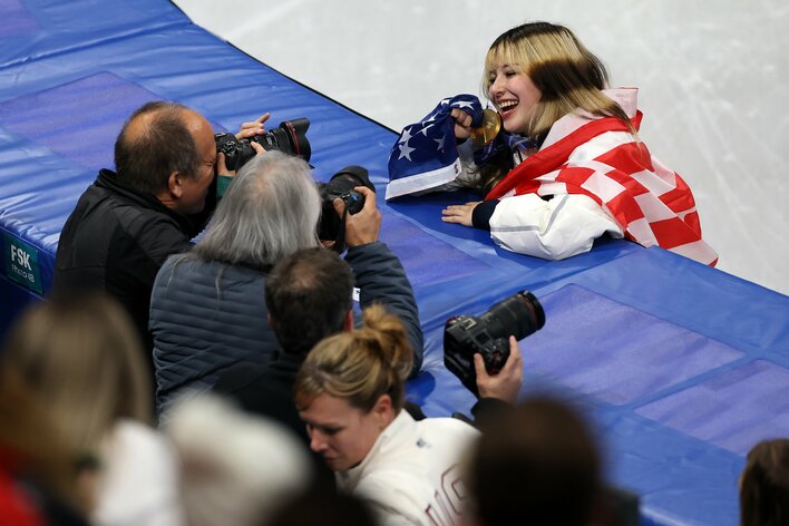 「漫画のキャラみたい」金メダルを“スフィンクス”な髪形で手にする姿が話題!日本を破った団体フィギュア米選手が超個性派ヘアスタイルを披露