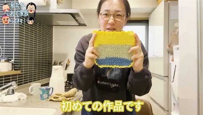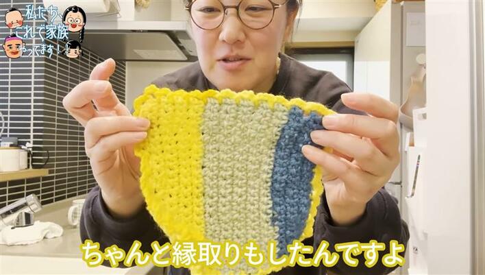 2児の母・たんぽぽ白鳥 “デカすぎる”編み物作品を初披露!かわいらしい色使いやフリルになった縁部分など奮闘したことを明かす