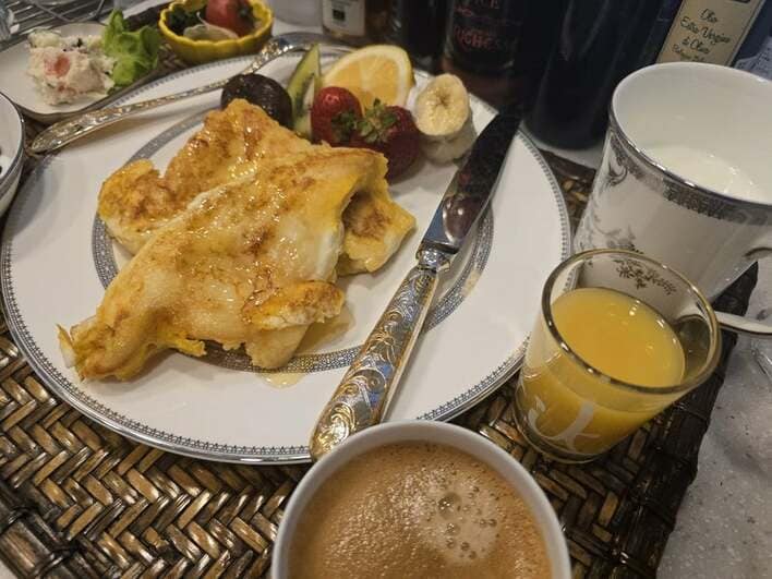 高橋英樹 “まるで高級ホテル”な贅沢朝食を披露!社長プレゼントのおしゃれな食器に乗った妻手作りフレンチトーストなどのメニューに「夢のよう」