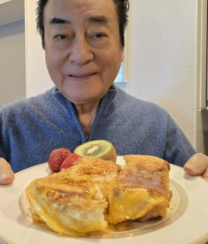 高橋英樹 “まるで高級ホテル”な贅沢朝食を披露!社長プレゼントのおしゃれな食器に乗った妻手作りフレンチトーストなどのメニューに「夢のよう」