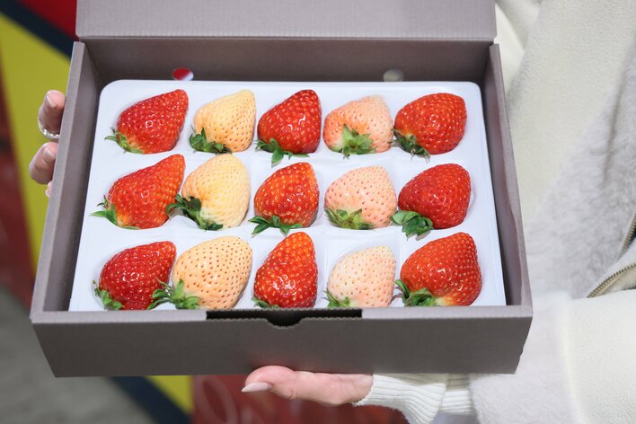 (左)「BENI」3品種×各1粒 とちおとめ / 古都華 / あまりん(1500円) (右)「SHIRO」3品種×各1粒 ミルキーベリー / 淡雪 / コットンベリー(1980円)