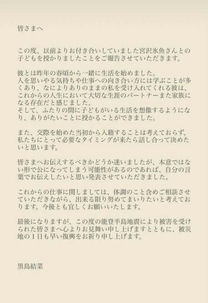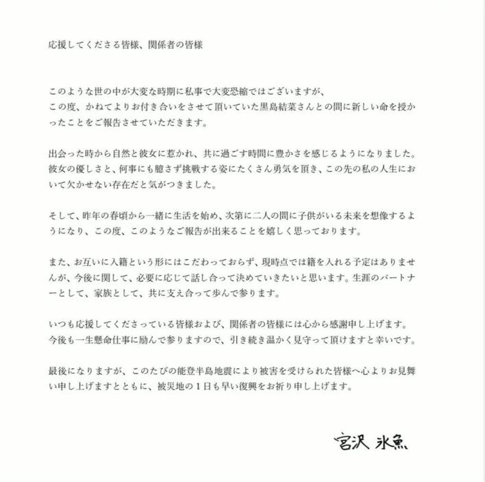 宮沢氷魚&黒島結菜 第一子妊娠を報告!入籍せず“事実婚”を選択「必要なタイミングが来たら話し合って決めたい」