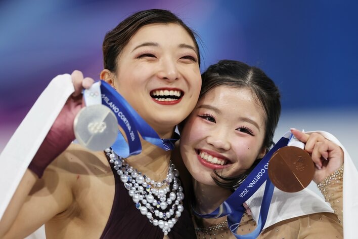 “固定職人かおちゃん爆誕”シーンが話題!坂本花織 表彰台を“ある技”の伝承式に変えた瞬間に「平和な世界線」「微笑ましすぎ」【ミラノ・コルティナ五輪】