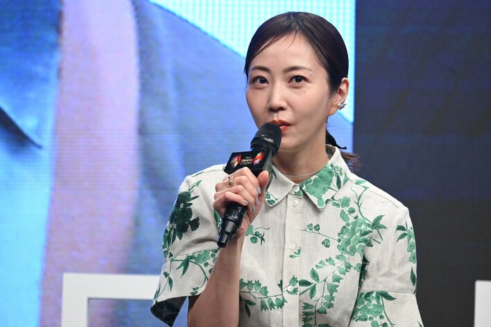 観客に笑顔を見せステージに向かう木南晴夏、高杉真宙