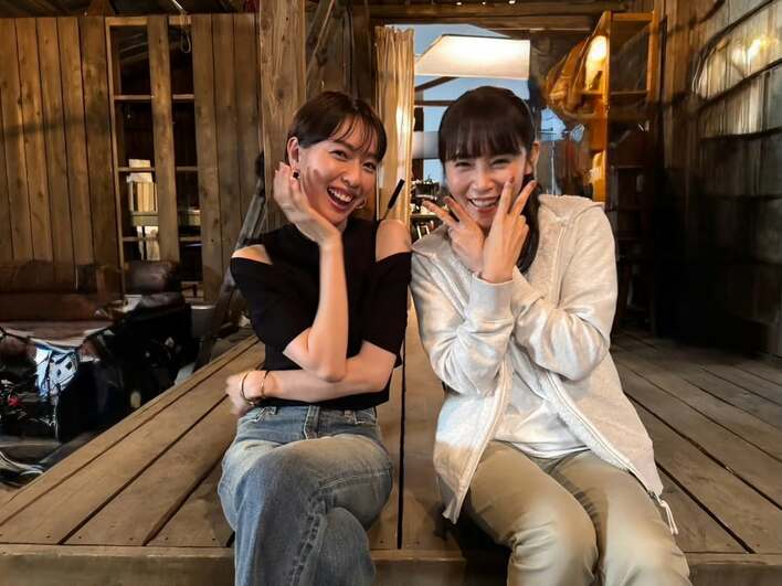 戸田恵梨香 共演中“パイセン”とのギャルなショット公開!舌ペロウインク&ダブルピースなど満面の笑みを浮かべた仲良しな姿を披露