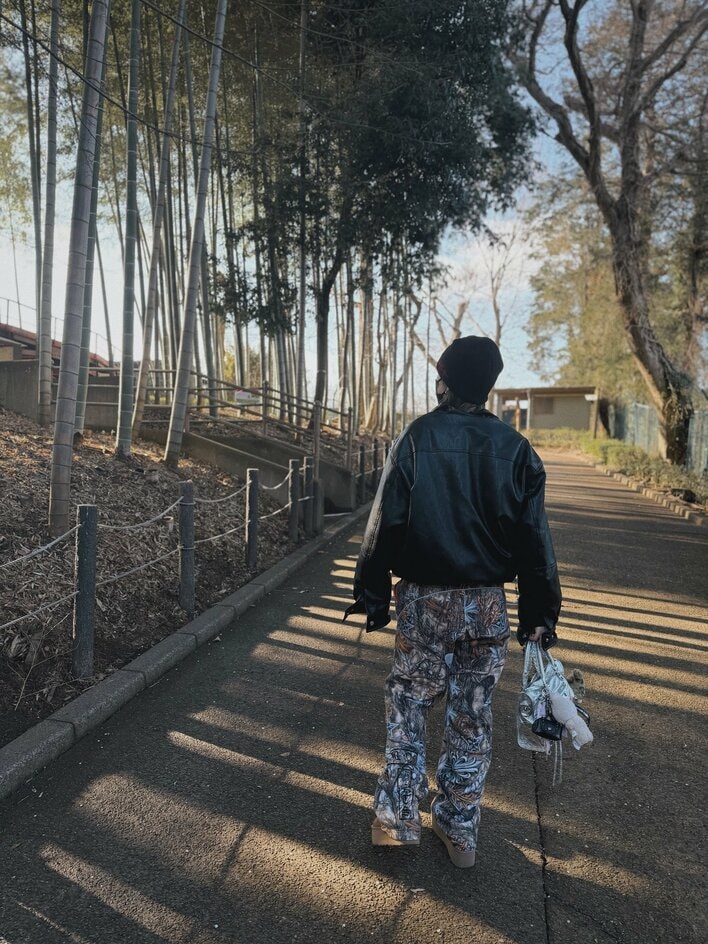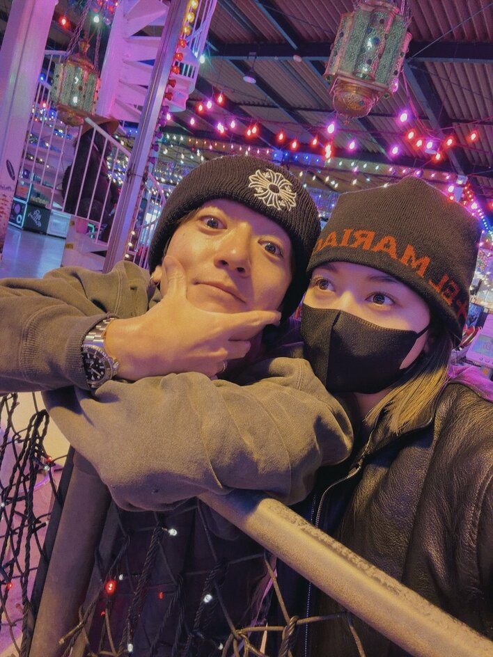 第1子妊娠中のみちょぱ 休日にふっくらお腹で念願のパンチくんと対面!メンズコーデを着こなし夫・大倉士門と「どっちだかわからない」