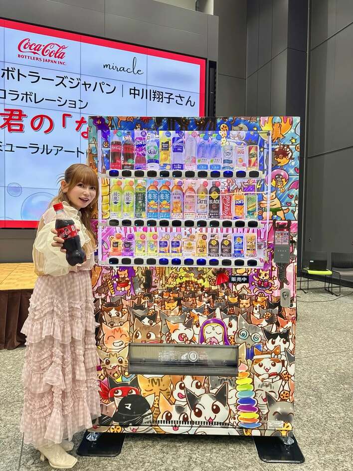 「才能に脱帽」中川翔子 妊娠中にお腹の上で描いた絵が自販機に!“しょこたんワールド”全開の超大作に反響