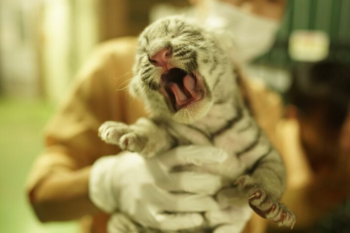 ホワイトタイガーの「3つ子の赤ちゃん」誕生!ぼーっとする様子や3頭並んで寝落ちする姿がたまらない【激かわアニマル奇跡の瞬間】