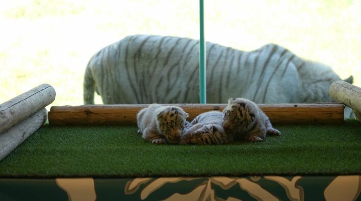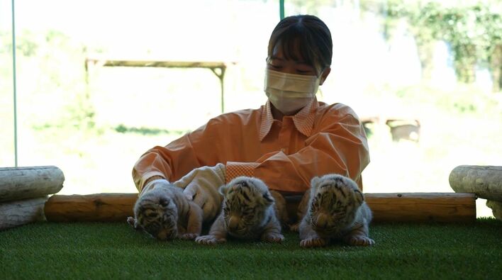 ホワイトタイガーの「3つ子の赤ちゃん」誕生!ぼーっとする様子や3頭並んで寝落ちする姿がたまらない【激かわアニマル奇跡の瞬間】