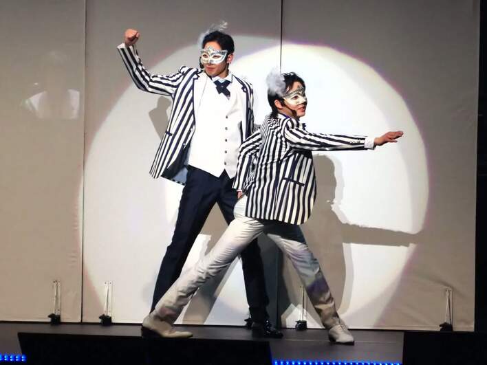 「奇奇怪怪盗団」の牧島輝(前)と有澤樟太郎(後)