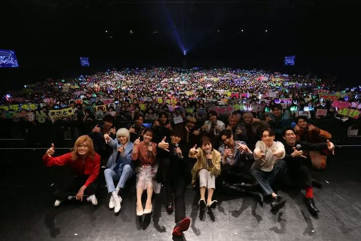 後列左から)ハル、アロハ、マサヒロ、シューヤ、タカシ、ユーキ、タクヤ、リョウガ、カイ前列左から)坂口涼太郎、宮世琉弥、八木勇征、桜井ユキ、三浦翔平、志田紗良、鈴木ゆうか、笠原秀幸
