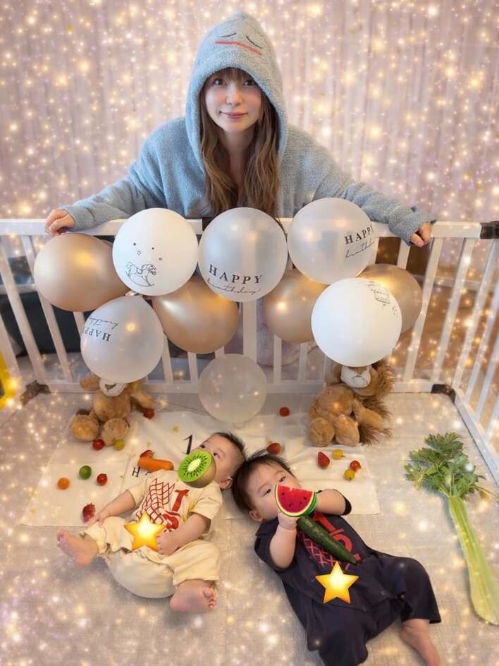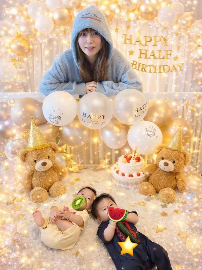 「大きくなった!」中川翔子 双子のハーフバースデーを“ハーフマヨ”衣装でお祝い!「2600グラムから8キロに」すくすく成長した様子に反響