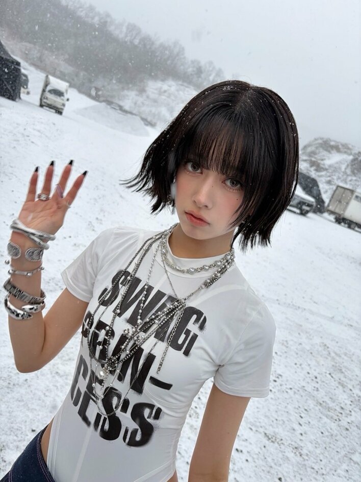 「こんな格好で!?」NiziU・RIMA ドデカまっピンクの車にボディスーツ姿でたたずむオフショット公開!雪の中の肌見せコーデにファン悶絶「神々しすぎるって・・・」