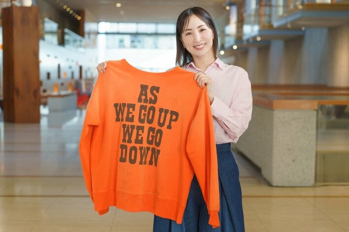 スウェットの背面には大きなメッセージのプリント