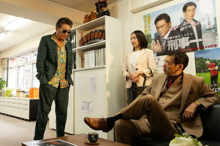 左から)熱護大五郎(船越英一郎)、柳川歩夢(宗清万里子)、北條克臣(大浦龍宇一)