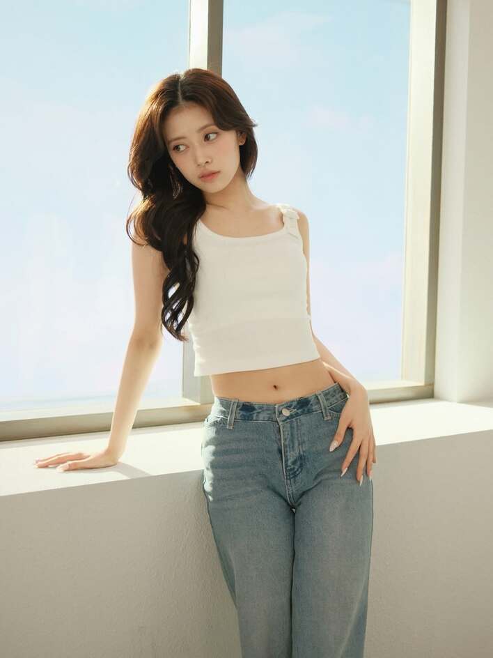 「マジ世界レベル」NiziU・RIMA “スタイル抜群”おなか見せ白タンクトップ×デニム姿披露!シンプルコーデのショットに「写真集にして」
