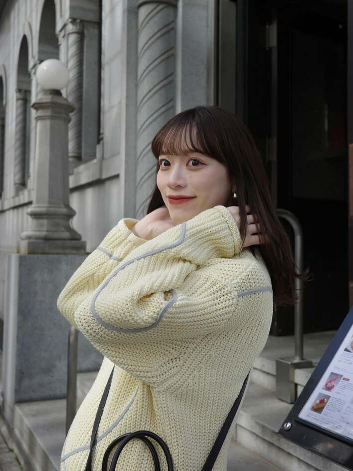 サッカー日本代表上田綺世の妻・由布菜月 春らしいマタニティコーデ披露!ふっくらおなか際立つパステルニットに「めちゃかわです」