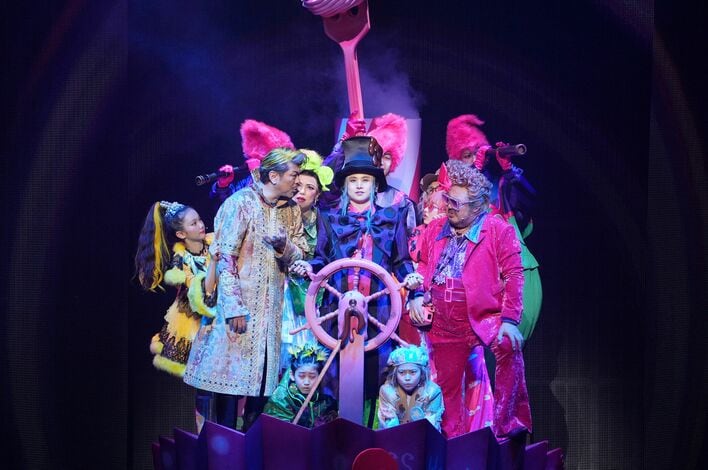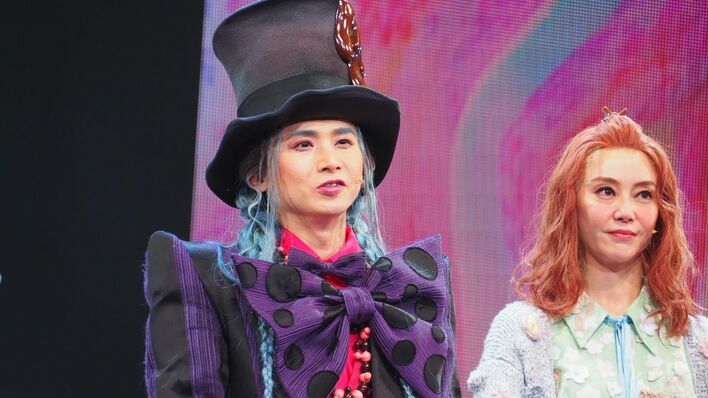 左から)岸祐二、鈴木ほのか、小金輝久、瀧上颯太、古正悠希也、堂本光一、観月ありさ、芋洗坂係長、彩吹真央
