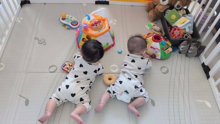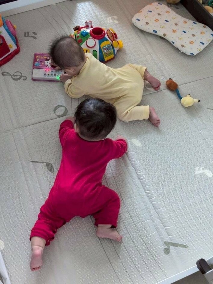 中川翔子「悲しくなってきました」生後6ヶ月双子の育児の悩みに「わかります」と共感の声!さらにシンクロショットやぎゅっとくっついて遊ぶ姿も